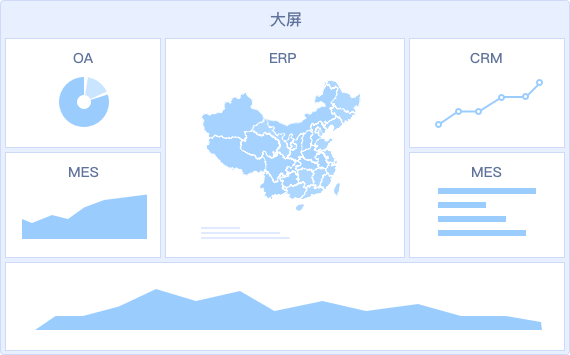 - 同一個大屏看板可以輕松整合ERP/OA/MES等多業(yè)務系統(tǒng)的數(shù)據(jù),打破信息孤島,進行綜合展示分析,讓決策更清晰